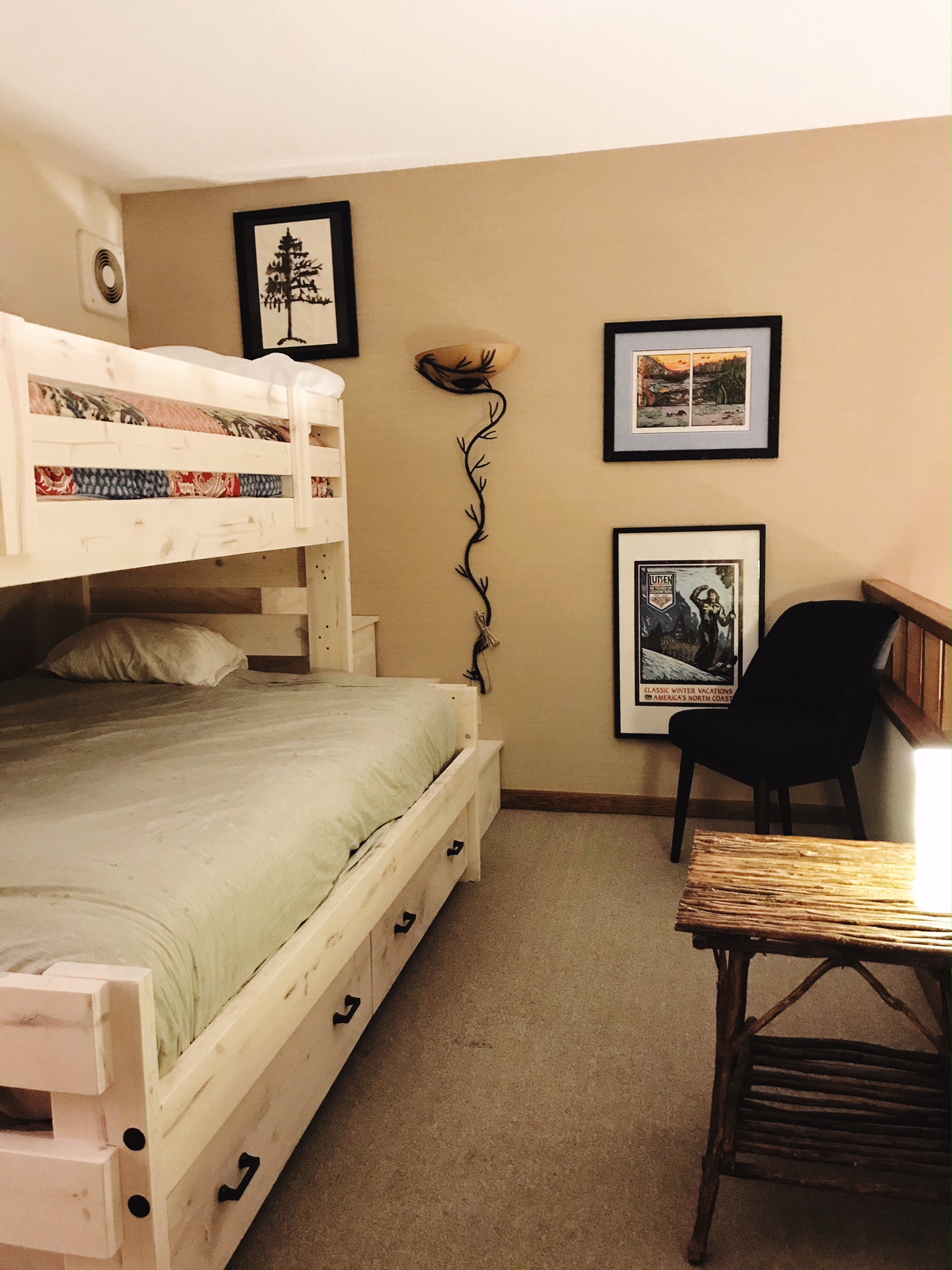 The loft features a sturdy bunk with ample room to slumber. The lower bed is a full size; the upper bed is a twin. December 1, 2017December 1, 2017 1512 × 2016 Caribou Highlands 142C at Lutsen – www.FromLutsenwithLove.com Like Loading...